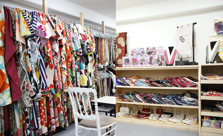 広々とした店内には、王道の古典柄振袖から、イマドキのトレンドをおさえた振袖まで、いろいろな種類の振袖が揃います。